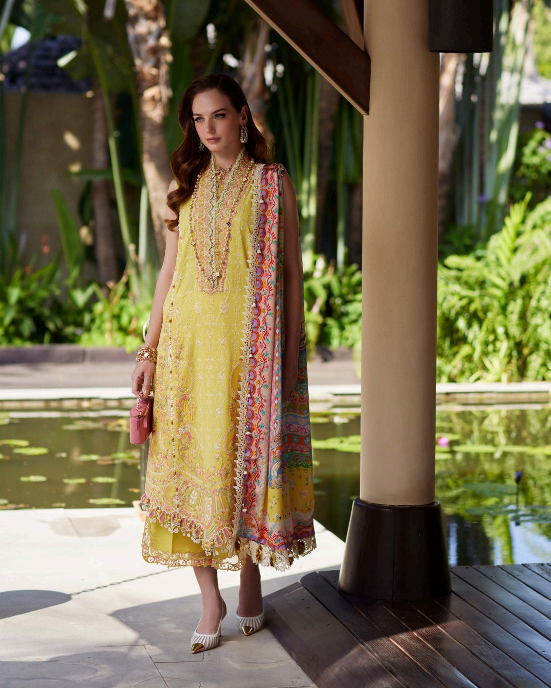 Brighten your wardrobe with this vibrant yellow ensemble from our luxury lawn collection. The embroidered...