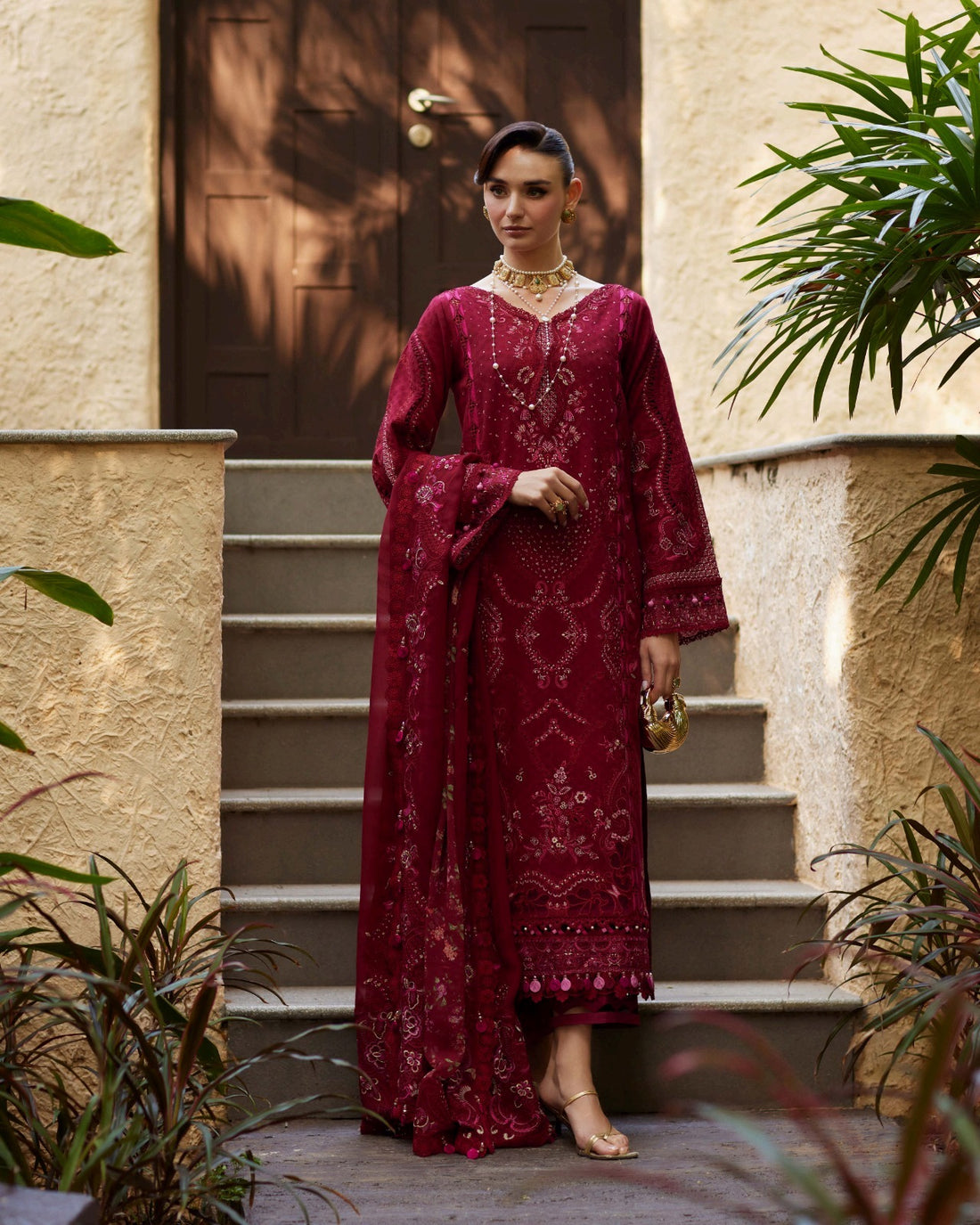 Experience the pinnacle of elegance with this deep red ensemble from our premier luxury collection....
