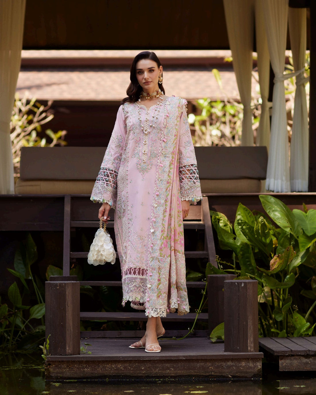Embrace delicate elegance with this soft powder pink ensemble from our luxury lawn collection. The...