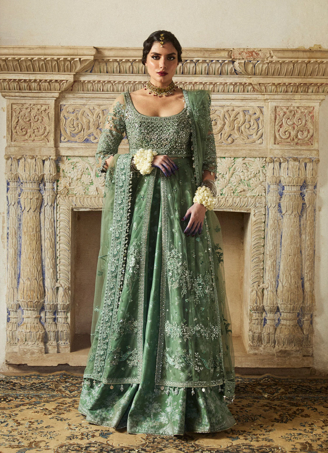 Fabric Details: Shirt: Organza Peshwas Trouser: Korean Raw Silk Lehnga Dupatta: Organza Fabric Details in...