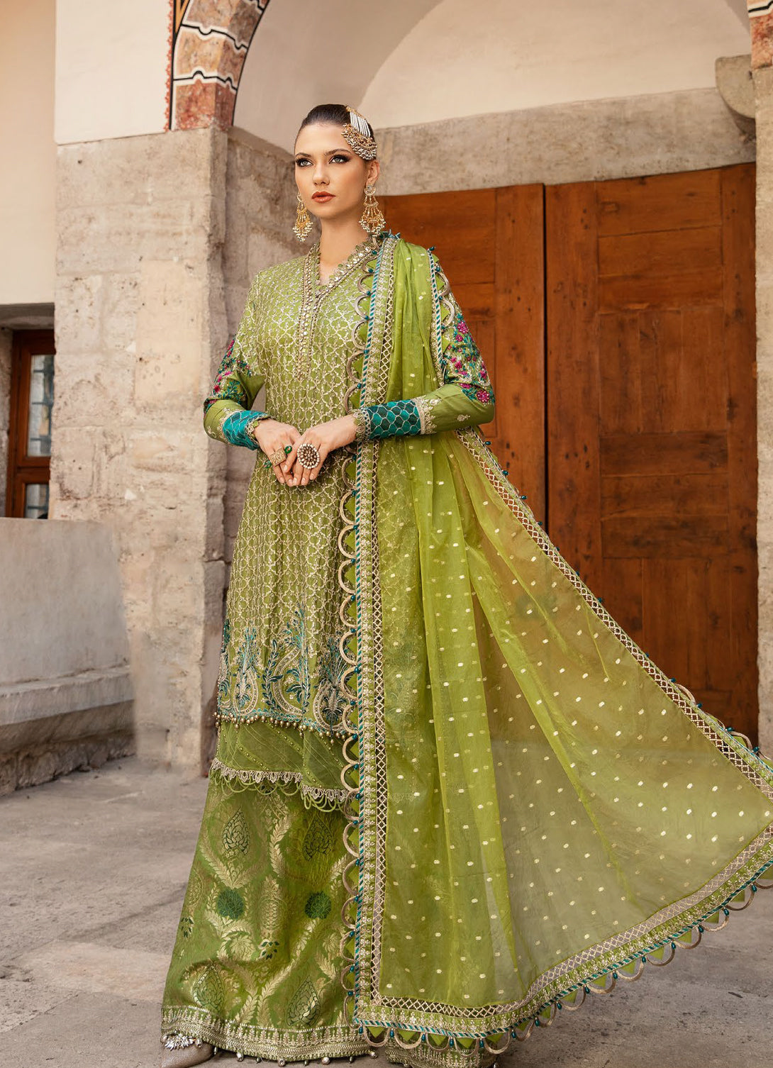 ShirtPrinted Embroidered FrontPrinted Back & SleevesEmbroidered Organza Ghera PattiFabric: CambricColor: Sea GreenDupattaPrinted DupattaFabric: ChiffonColor: Sea...