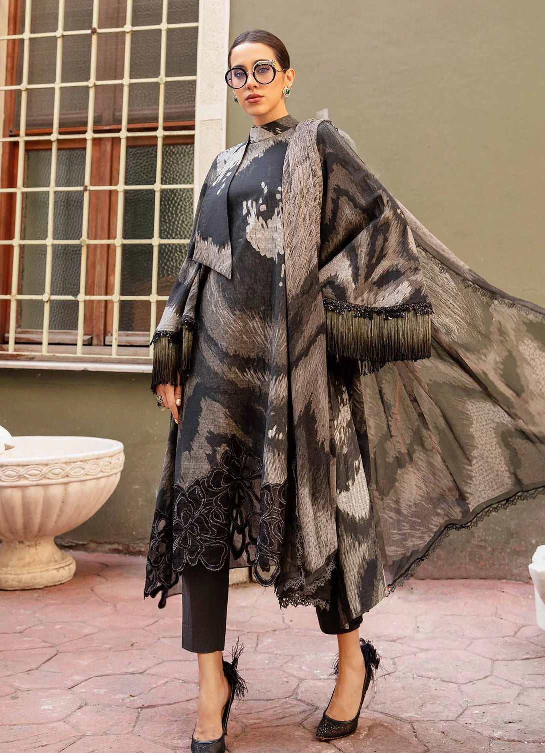 ShirtPrinted ShirtEmbroidered PattiEmbroidered Ghera PattiFabric: CambricColor: GreyDupattaPrinted DupattaFabric: ChiffonColor: GreyTrousersDyed TrousersFabric: CambricColor: Grey
