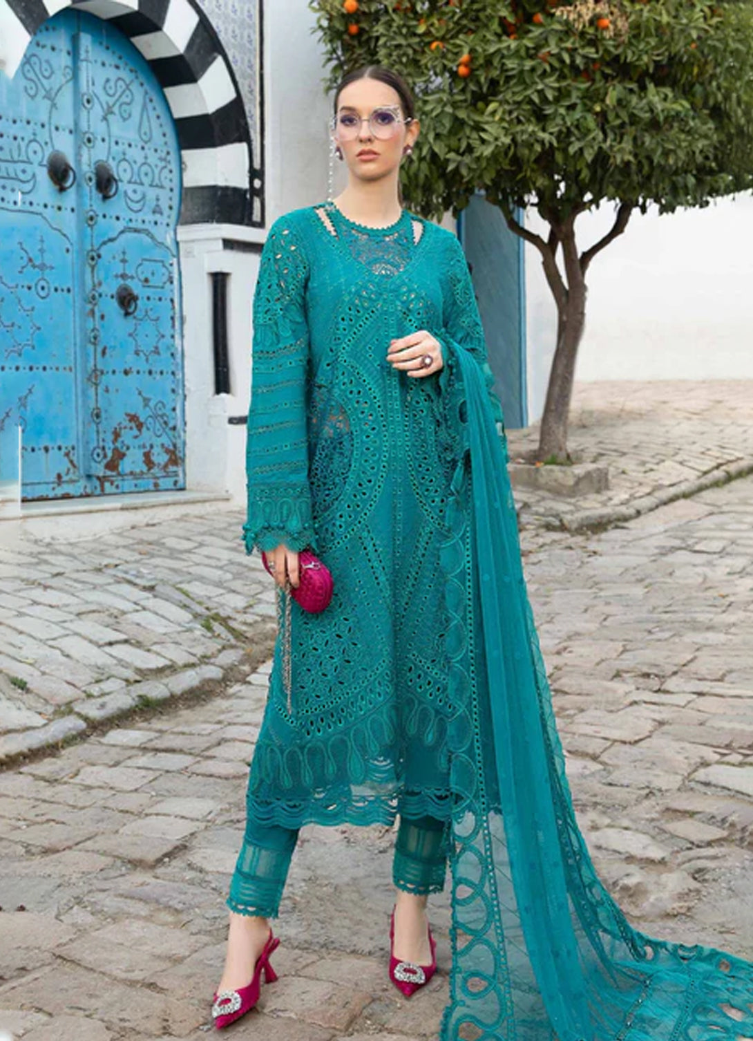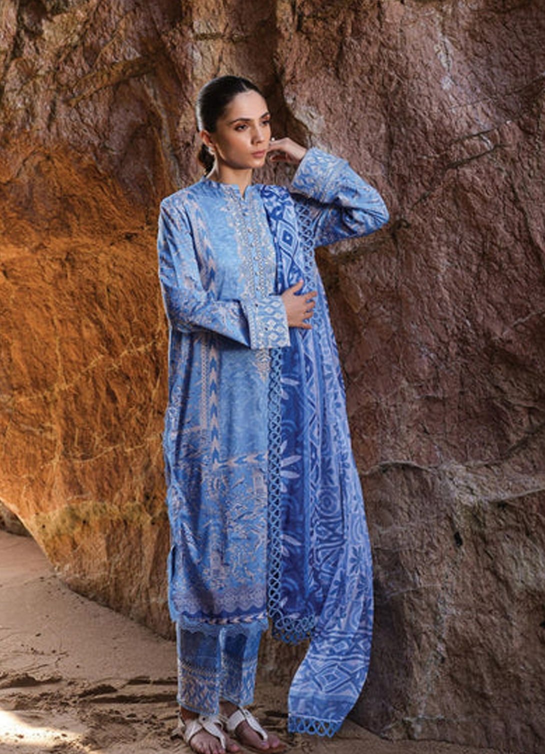 Gender: Women Category: Clothing Outfit Type: Eastern Sub-Category: Unstitched Color Type: Blue Dupatta Fabrics: Chiffon Number of Pieces: 3 Piece Season: Summer Wear...
