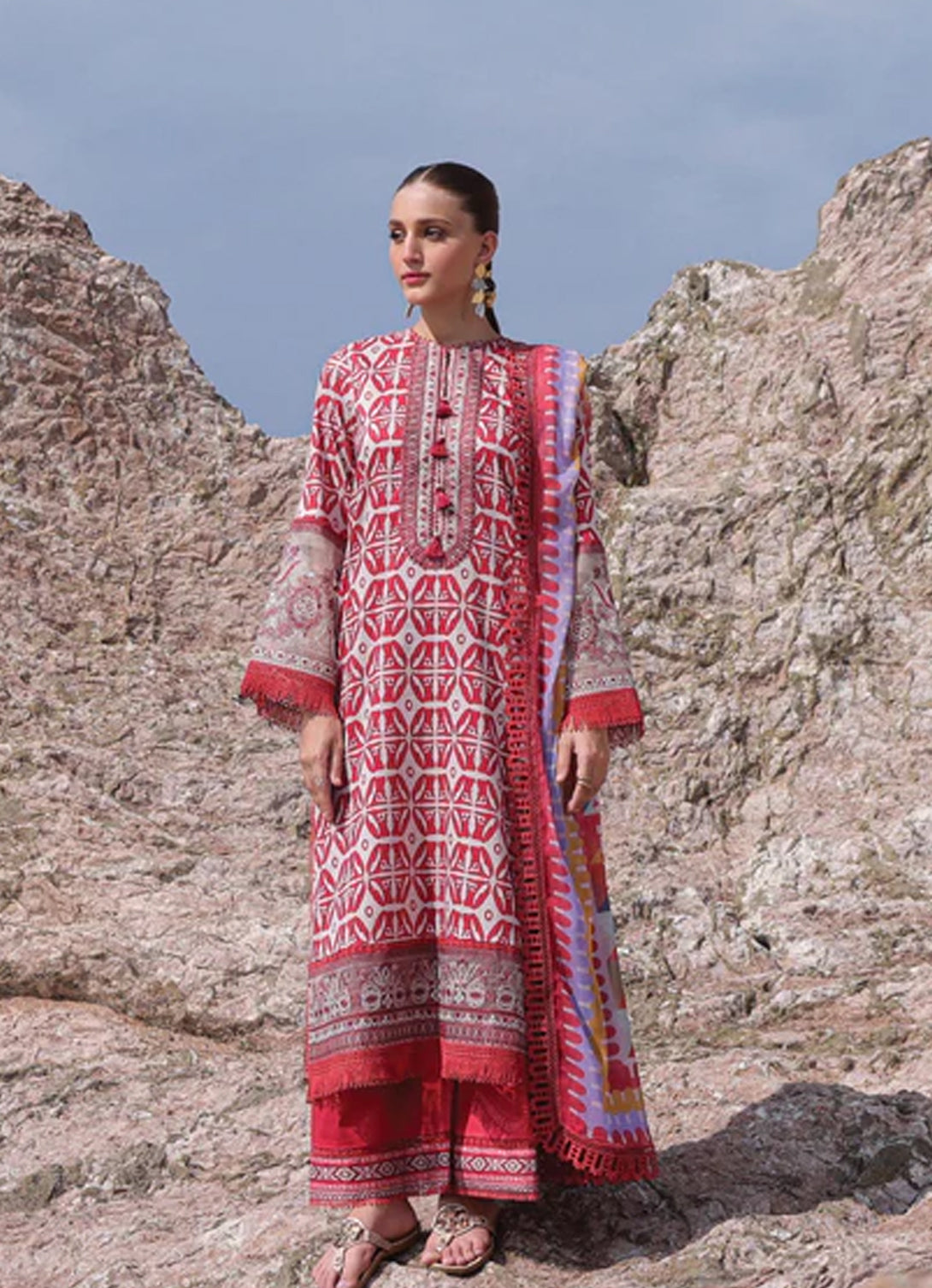 Gender: Women Category: Clothing Outfit Type: Eastern Sub-Category: Unstitched Color Type: Multi Dupatta Fabrics: Chiffon Number of Pieces: 3 Piece Season: Summer Wear...