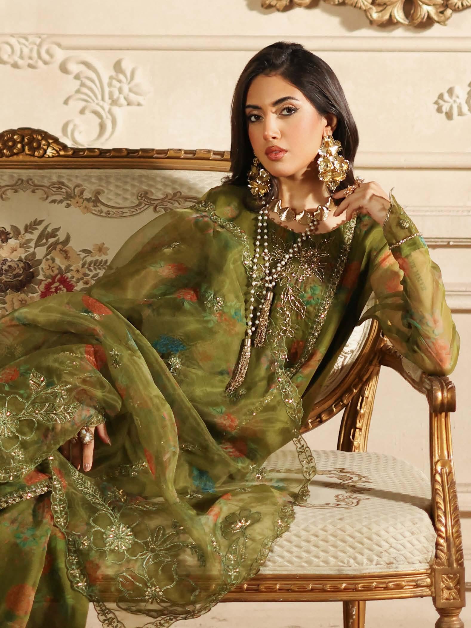 3-PC Embroidered Organza Shirt with Embroidered Organza Dupatta and Trouser CMA-4-075