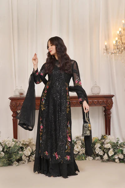 This luxury embroidered chiffon suit features intricate embroidery and includes a matching chiffon dupatta. Exquisitely designed and crafted, this 3-piece suit is perfect for special occasions and will elevate any wardrobe. Make a statement with this high-end, stylish suit. with sequins Elevate your wardrobe with the timeless elegance of intricate embroidery and luxurious chiffon. Made with high-quality materials, this 3-piece suit is perfect for special occasions. The matching dupatta adds an extra touch of sophistication. With its stunning design and attention to detail, this suit will make a lasting impression. And don't forget the added sparkle from the delicate sequins.