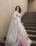 Masterfully crafted, Chanaah is a statement silhouette on a light grey palette. The organza choli and Korean Raw Silk lehenga feature lavishly adorned badla, resham and mirror embellishments. This set comes paired with an embroidered organza dupatta making it the perfect choice for your special occasions.