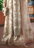 Radiating purity and sophistication, this ethereal ivory frost ensemble is a masterpiece of timeless grace. The shirt is designed with exaggerated hand-embellished organza panels and a cutwork neckline, elevated by intricate embroidery and ornate borders that speak of refined artistry. A delicately embroidered dupatta, adorned with laser-cut details and pallu accents, flows with understated elegance. Paired with a digitally printed trouser and inner, the ensemble combines modern precision with traditional craftsmanship. Finishing touches of colli sequin spray and intricate adda work add subtle radiance, making this look a true celebration of elegance and charm.