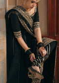 Classic meets contemporary in this elegant black pishwas, tailored from premium Korean fabric for a soft, flattering fall. Detailed with gota lace panels and a finely embroidered square neckline, the silhouette brings together grace and structure in perfect harmony. Paired with a traditional churidar pajama and a heavily embroidered dupatta, this three-piece ensemble is ideal for festive evenings, intimate weddings, or any occasion where timeless style is key. Understated yet striking—this is black done beautifully.