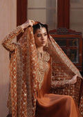 Elevated and elegant, this Golden Mocha ensemble is a celebration of rich tones and refined details. The long shirt, tailored in luxurious tissue silk, features delicate embroidery on the neckline and sleeves, adding a touch of craftsmanship to its sleek silhouette. Paired with flared pants in the same smooth fabric, the set flows effortlessly—making it ideal for formal affairs. A matching organza dupatta, fully covered in embroidery, completes the look with texture and grace. This three-piece outfit is perfect for festive evenings and elegant gatherings, where subtle opulence takes center stage.